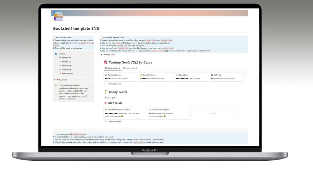 I've made this template while I'm managing my bookshelf, so it's user friendly and has lot of functions that you need when you tracking your reading status.