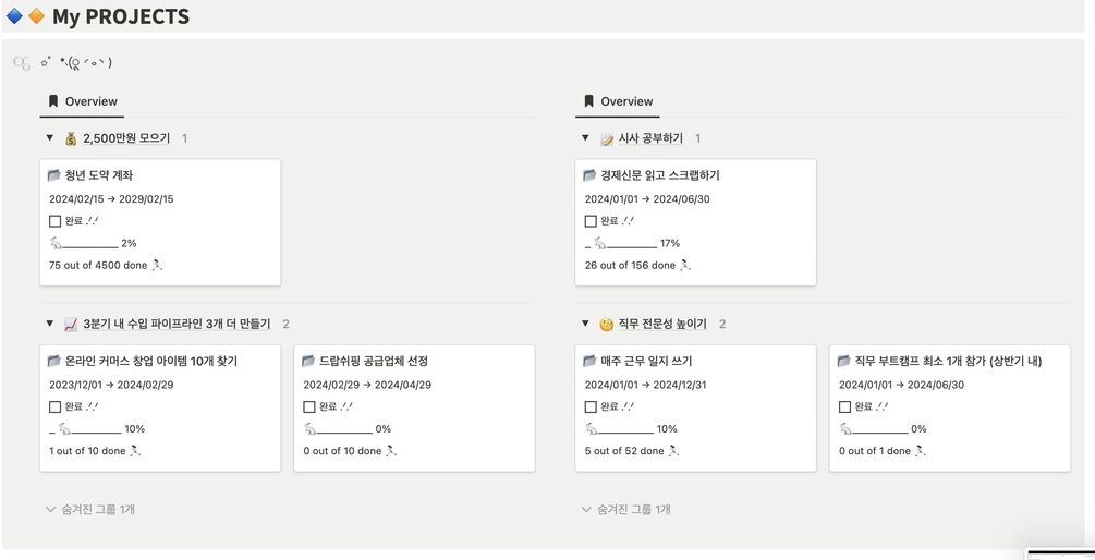 수치화해서 성취도 관리하기엔 좋지만, 목표를 너무 세세하게 세워서 한 눈에 파악하기 어려운 정량목표