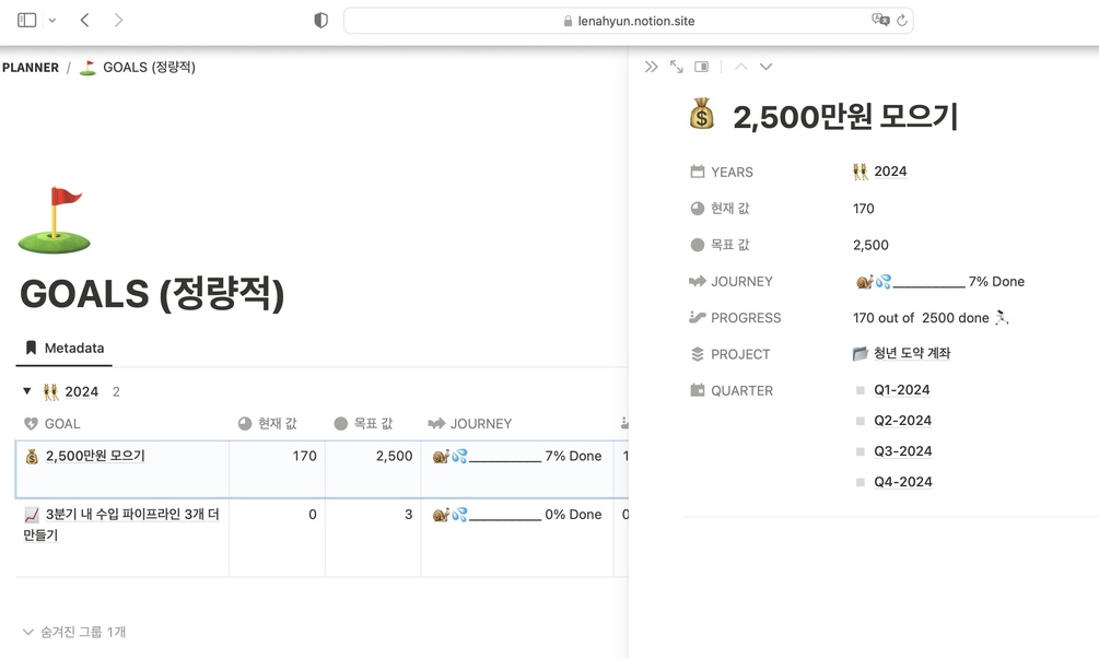 수치화해서 성취도 관리하기엔 좋지만, 목표를 너무 세세하게 세워서 한 눈에 파악하기 어려운 정량목표